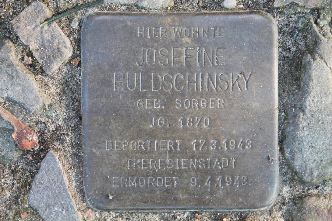Am 18. 3. 1943 wurde Josephine Huldschinsky mit der Häftlingsnummer 11666 nach Theresienstadt deportiert. Kurz vorher wurde sie aber noch im Sammellager in der Leistikowstraße 2 untergebracht, wo sie ihre Ver- mögenserklärung ausfüllen musste. Allerdings wurde ihre Wohnung erst am 16.06.1943 geräumt. Sie starb am 9.4.1943, also in einem Zeitraum von weniger als einem Monat, im Alter von 72 Jahren in Theresienstadt.