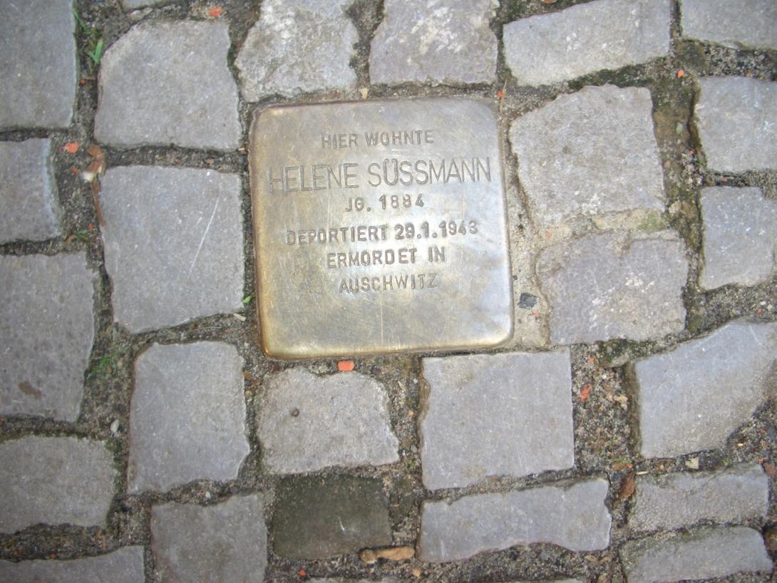 Helene Süssmann ist am 23. März 1884 in Zabrze/Hindenburg in Schlesien geboren. Sie war ledig und wohnte in Wilmersdorf in der Ahrweiler Straße 32, wurde allerdings gezwungen, in die Sächsische Straße 67 zu Cohn umzuziehen.