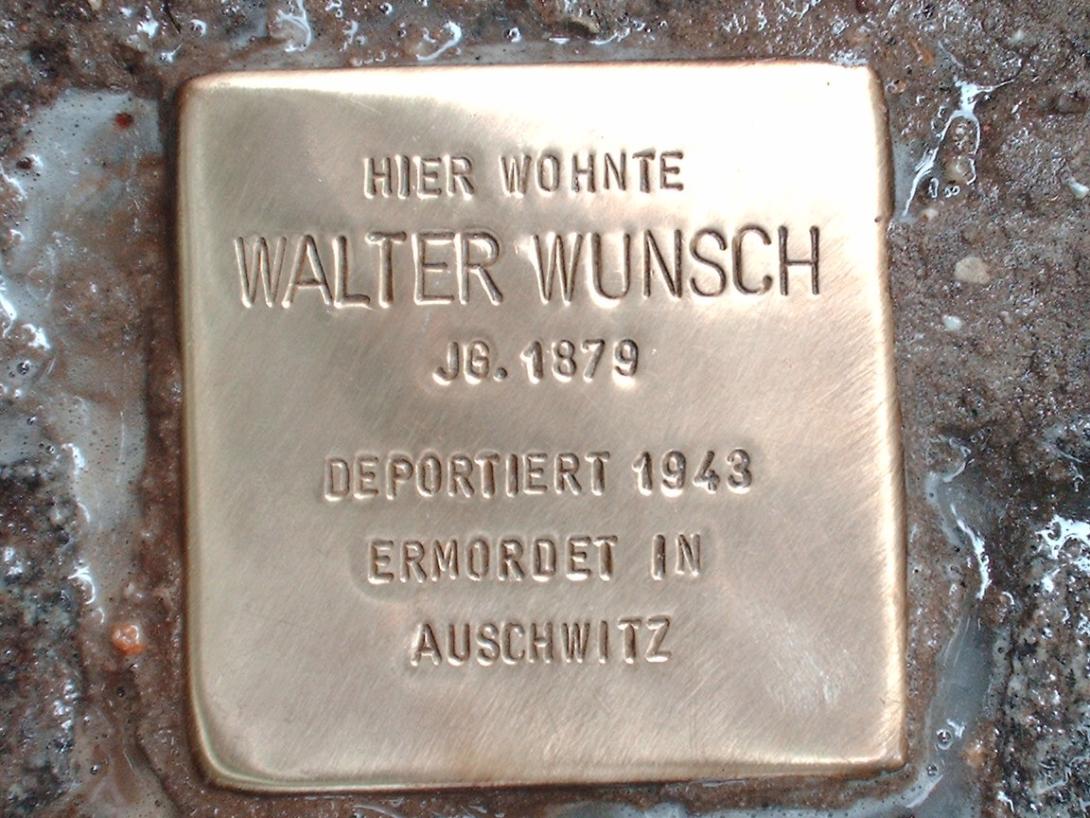 Am 24. Oktober 1941 wurden Leo und Margarete Wunsch in das Ghetto Litzmannstadt / Łódź deportiert. Leo Wunsch überlebte die unmenschlichen Bedingungen im Ghetto , die auf die Ermordung durch Zwangsarbeit, Mangelernährung, Kälte und fehlende medizinische Versorgung zielten, kaum ein halbes Jahr. Drei Wochen nach seinem Tod am 22. April wurde Margarete Wunsch am 14. Mai 1942 aus dem Ghetto Litzmannstadt weiter in das Vernichtungslager Kulmhof (Chełmno) deportiert und dort ermordet. Walter lebte bis ins Frühjahr 1943 in Berlin als Untermieter in einer Wohnung in der Alexanderstraße 37 am Alexanderplatz. Am 3. März 1943 wurde er im Rahmen der Fabrikaktion , die die letzten offiziell in Berlin lebenden, vornehmlich in Rüstungsbetrieben beschäftigten Juden erfasste, in das Vernichtungslager Auschwitz deportiert. Der damals 63-jährige Walter Wunsch wurde in Auschwitz – vermutlich unmittelbar nach seiner Ankunft – ermordet.