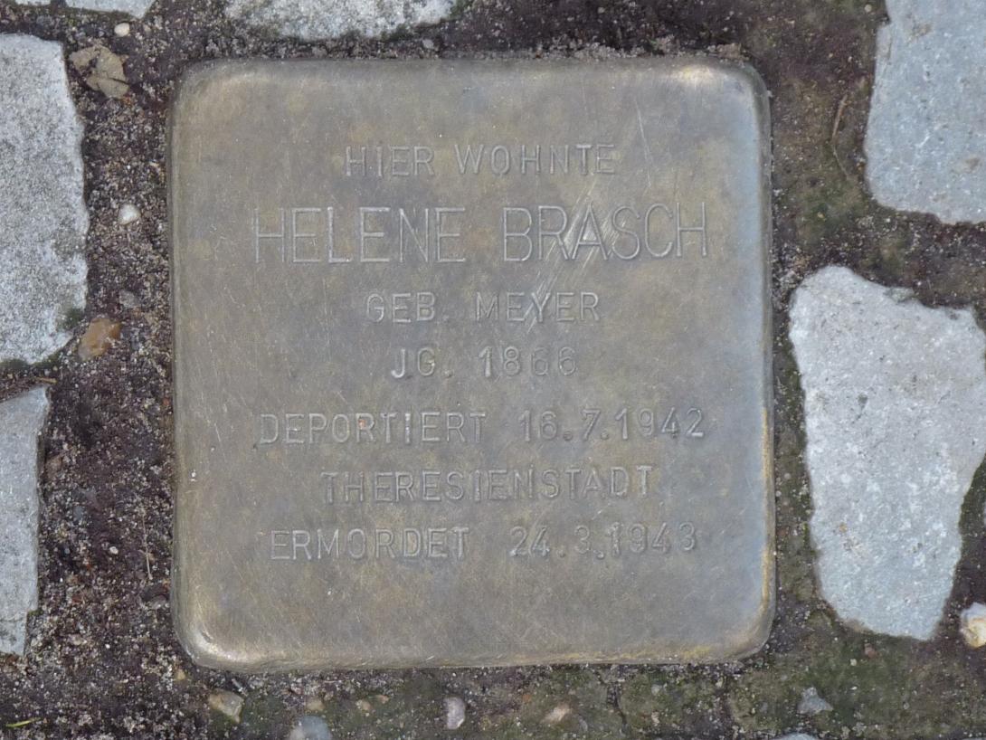 Helene Brasch war die zweite Tochter vom Emil Meyer und Ottilie geb. Placzek und erblickte am 20. Mai 1866 in Körlin, Pommern (heute Karlino) das Licht der Welt. Ihre ältere Schwester Lina war 1860 geboren worden, die jüngere, Wanda, 1869. Vielleicht hatte sie auch noch mehr Geschwister. Als sich Lina 1882 mit Siegfried Elster verlobte, lebte die Familie bereits in Berlin in der von-der-Heydt-Straße 4. Emil Meyer ließ sich ins Adressbuch als Rentier eintragen. Drei Jahre später heiratete Helene am 20. Mai 1885 Julius Brasch (mehrfach auch Israel, Julius Israel oder Julius Isidor genannt). Julius Brasch betrieb ein Nutzholzgeschäft in der Friedrichstraße 12.