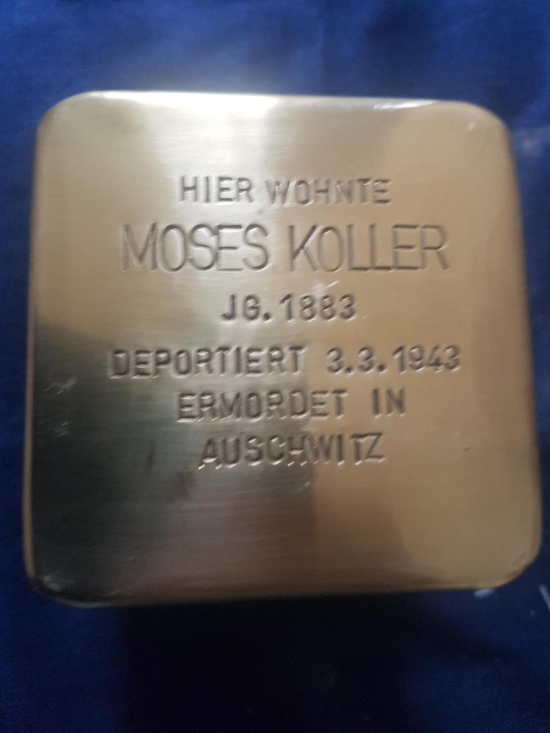 Moses Koller wurde am 7. März 1883 in Rudnik in Oberschlesien geboren. Er war mit Anna, geb. Bendiner (*2. März 1890 in Berlin), verheiratet. Leider ist nicht viel über das Ehepaar bekannt. Sie waren gläubige Juden, die sich koscher ernährten und den Sabbat einhielten.