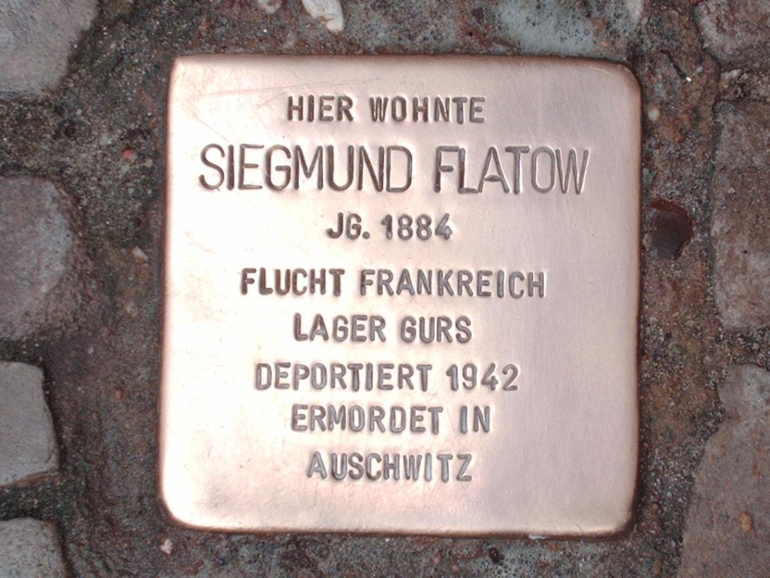 1938/1939 flüchtete Siegmund Flatow nach Belgien. Im Mai 1940 wurde er unter der deutschen Besatzung verhaftet und in dem Durchgangslager Saint Cyprien in den Pyrenäen interniert. Am 28. August 1942 ist er vom Sammellager Drancy nach Auschwitz deportiert und dort ermordet worden.