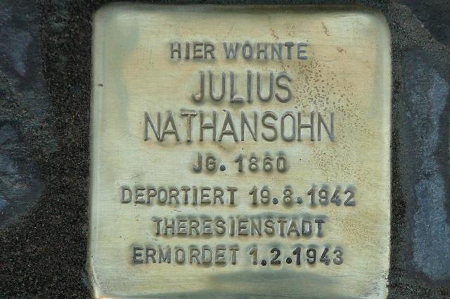 Deportiert wurde Julius Nathansohn zusammen mit seiner Frau Gertrud am 19. August 1942 in einem von zwei verriegelten Waggons, mit denen 100 Menschen nach Theresienstadt gebracht wurden. Nur zwei von ihnen überlebten den Massenmord an den Juden.