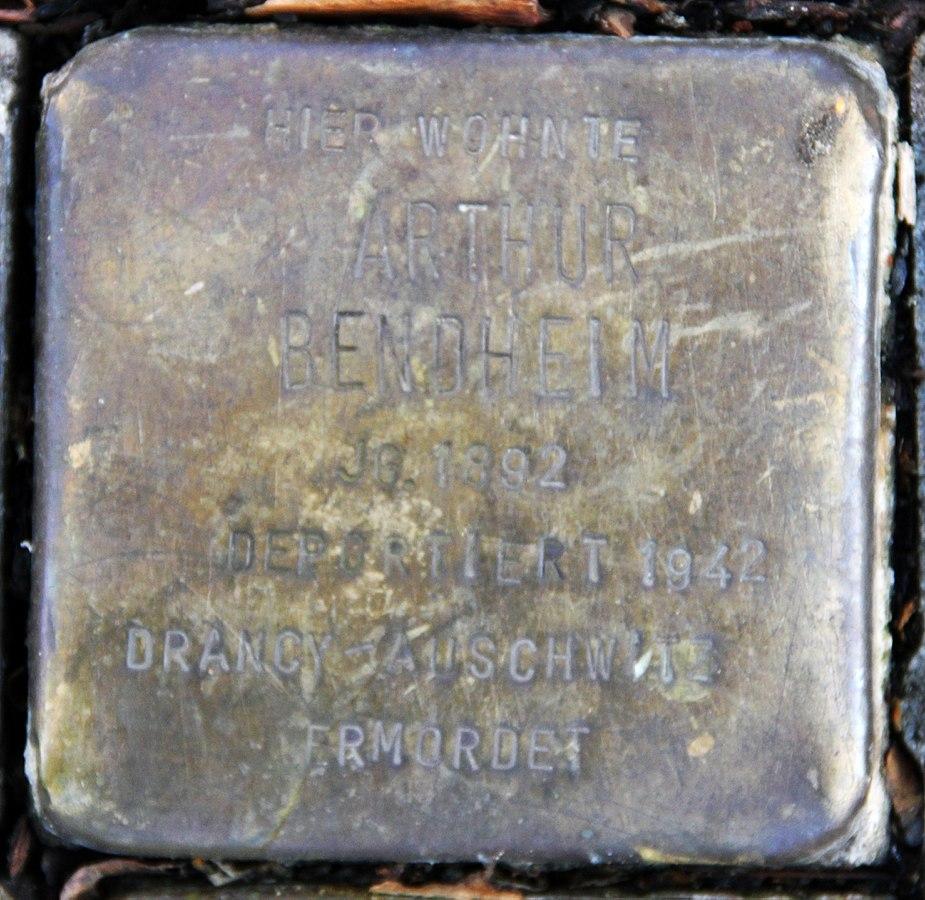 Arthur Bendheim wurde am 10.12.1940 in Gurs/Frankreich aufgegriffen, interniert und im August 1942 nach Drancy gebracht, von wo er nur vier Tage später, am 10.08.1942, nach Auschwitz deportiert und ermordet wurde. In Auschwitz wurden 1943 auch seine Frau Auguste und sein Sohn Ralph ermordet. Seine Tochter Margot überlebte.