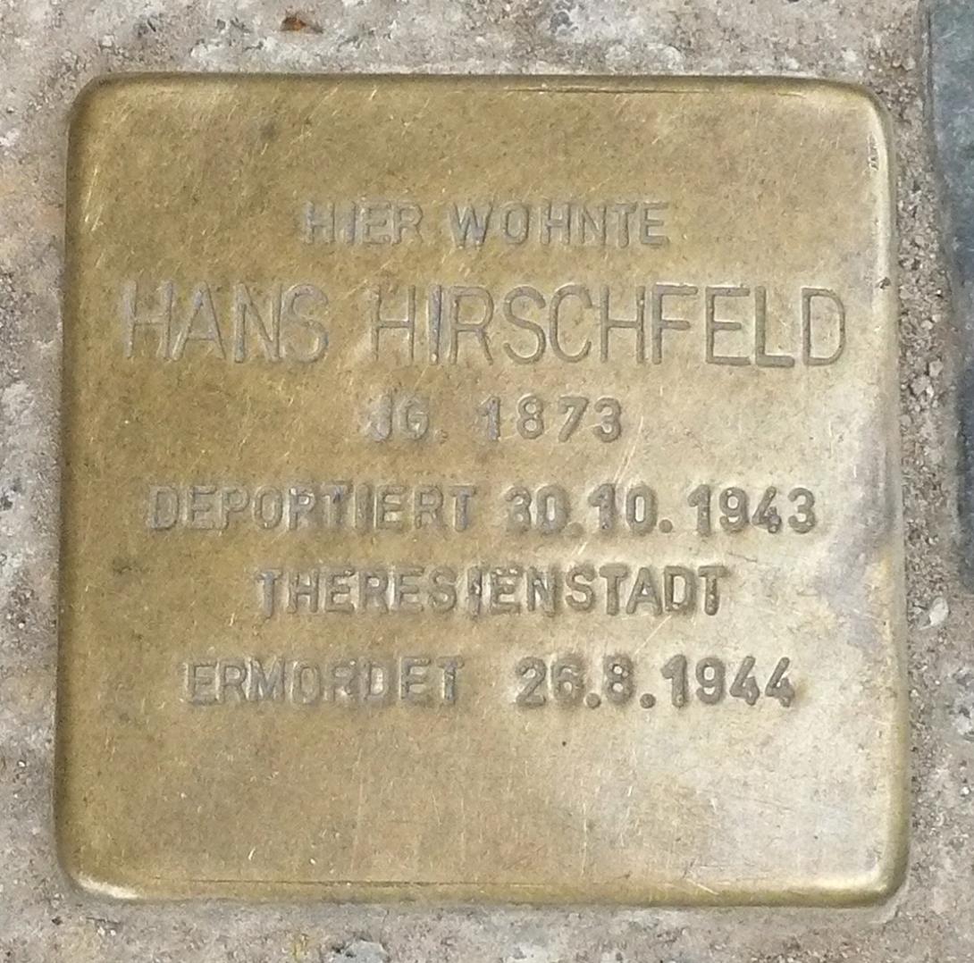 Die Nazis hatten ein perfides System entwickelt, um wohlhabenden Juden ihr Geld abzunehmen. Um vorzutäuschen, dass die Deportierten in Theresienstadt ein Sanatorium oder Altenheim erwartete, mussten sie für den Transport in den Tod auch noch zahlen. Das entsprach zusammen dem Betrag, den sie auf dem Bankkonto hatten und über den sie ohnehin seit 1941 nicht mehr verfügen konnten. Hirschfeld hatte gemäß Vermögenserklärung von 1940 Wertpapiere in Höhe von mehreren zigtausend RM bei der Deutschen Bank. Am 21. Oktober 1942, eine Woche vor der Deportation, musste er einen „Sonderbeitrag für Abwanderung“ sowie Beträge für Altersheim-Verpflegung und Pflegegeld und Transport bezahlen. Das verbliebene Vermögen von über 60.000,00 RM wurde als „Heimeinkauf“ eingezogen. Zudem wurde die Jüdische Kultusvereinigung zum Einziehen und der Weitergabe des Geldes missbraucht. Am 29.Oktober 1942 wurden Hans Hirschfeld und seine Frau Rosa in das Sammellager Große Hamburger Straße 26, ein ehemaliges jüdisches Altenheim, gebracht und am nächsten Tag nach Theresienstadt deportiert.