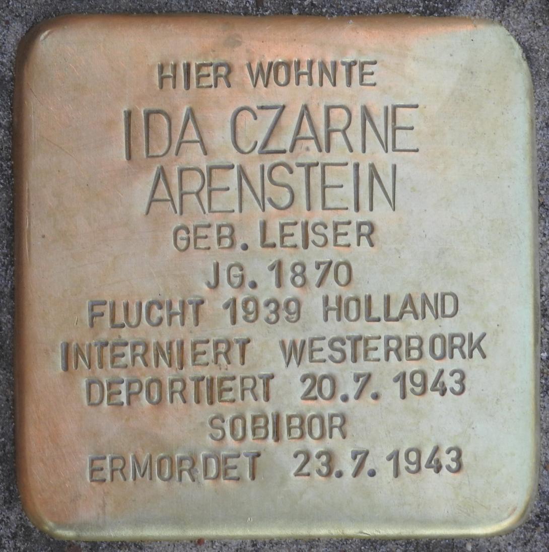Am 20. Juli 1943 wurden Czarne Arenstein und Fanny Jolles von der Gestapo nach Sobibor deportiert und dort am 23. Juli 1943 ermordet. Czarne Arenstein wurde 73 Jahre alt.