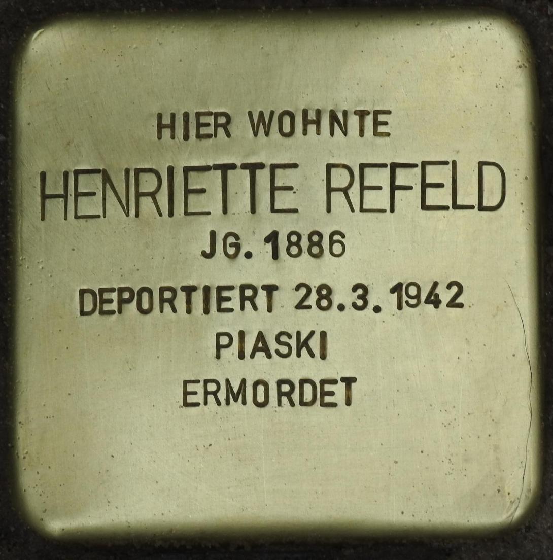 Eigentlich hatte auch Henriette Refeld vor, zusammen mit ihrer Schwester Selma auszuwandern, aber "leider ging es dann nicht mehr", wie Zeugen berichteten.