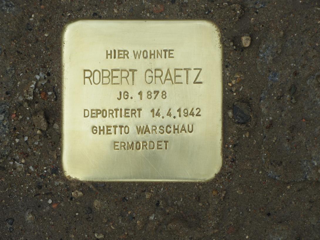 Robert Graetz wurde am 14. April 1942 mit einem von den NS-Behörden als „14. Osttransport“ gekennzeichneten Zug, voll besetzt mit etwa 1000 Menschen, vom Bahnhof Grunewald ins Warschauer Ghetto deportiert. In älteren Reichsbahn-Listen war als Zielort Trawniki genannt worden. Robert Graetz hatte sich an diesem Tag ursprünglich von seiner Schwester Selma und ihrem Ehemann Ignatz Becker am Bahnhof Grunewald verabschieden wollen, die sich dort zur Deportation hatten einfinden müssen. Robert Graetz durfte jedoch den Bahnhof nicht mehr verlassen und wurde ebenfalls auf einen der frei gewordenen Plätze dem Abtransport zugeordnet. Dieser Transport gehörte zu den Todeszügen, die seit dem 18. Oktober 1941 deutsche Juden aus dem „Altreich“ zunächst nach Lodz, Kowno, Minsk, Riga und in den Distrikt Lublin, später nach Auschwitz „evakuierten“, wie die Nazis ihre planmäßigen Massendeportationen umschrieben. Nach dem Ende des Zweiten Weltkriegs wurde das Todesdatum von Robert Graetz auf Beschluss des Amtsgerichts Charlottenburg auf den 31. Dezember 1945 festgesetzt.