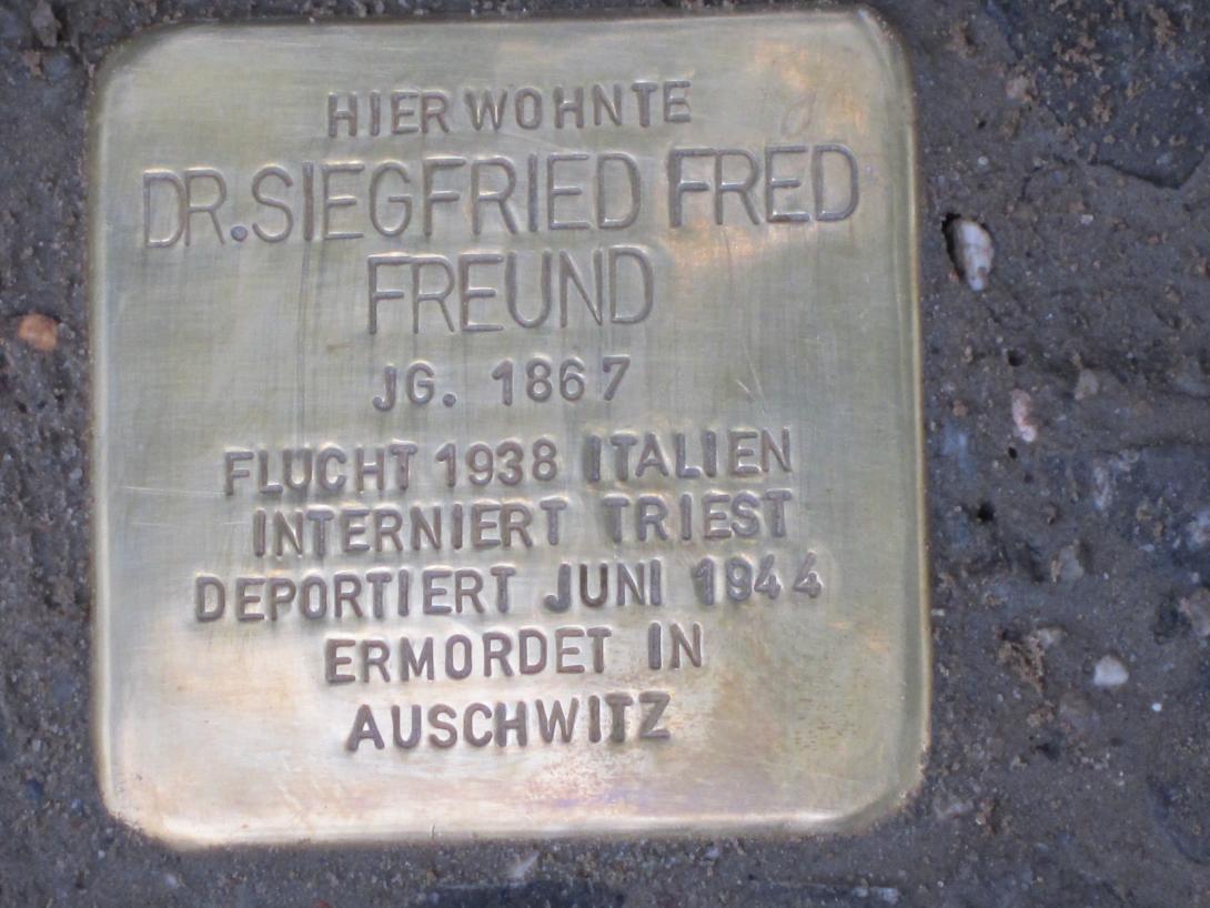 1936 war die Tochter mit ihrem – nach Definition der Nationalsozialisten „arischen“ – Ehemann in die Vereinigten Staaten gereist, er kehrte nach wenigen Wochen zurück und reichte die Scheidung ein. Siegfried Freund bereitete heimlich die Flucht vor, denn er dachte, von den Erträgen eines Schweizer Bankkontos mit seiner Frau leben und seine in Amerika in Armut lebende Tochter unterstützen zu können. Die unverheiratete Schwägerin Helene Mosler zog 1938 ins Haus und hatte mit der seit 1901 in der Familie angestellten Köchin Agnes Schröder und deren Ehemann Vollmachten über Konto und Grundstück. Else und Siegfried Freund fuhren im Frühsommer 1938 – offiziell in den Urlaub – nach Abbazio an der italienischen Adria (heute: Opatija / Kroatien). Siegfried Freund praktizierte hier, während in der Fregestraße ein Vertreter eingesetzt wurde, der jedoch mit dem Entzug der Kassenzulassung von Freund im Dezember 1938 seine Arbeit einstellen musste. Mit der Kriegserklärung Italiens an Frankreich und Großbritannien am 10. Juni 1940 stellte die Schweizer Bank jeden Geldtransfer nach Italien ein. Freunds waren nun auf die Unterstützung der jüdischen Gemeinde angewiesen. Am 27. November 1941 wurde das Ehepaar offiziell ausgebürgert. Bereits seit November 1943 machte die faschistische oberitalienische Regierung Jagd auf Juden und lieferte sie an die deutschen Behörden aus. Nach dem deutschen Einmarsch am 1. August 1944 wurden alle Juden aus Abbazio abgeholt und über das Sammellager Triest nach Auschwitz deportiert. Ob Freunds noch in Abbazio oder in Triest Suizid begingen oder in Auschwitz in den Gaskammern ermordet wurden, ist aus den Quellen nicht zu belegen. Nach der Registrierung der ankommenden Transporte erreichten am 6. August 1944 300, am 16. August 66 und am 18. August 139 Menschen aus Triest die Selektionsrampe in Auschwitz-Birkenau, wo 100 beim 1. Transport, 8 beim 2. und 27 beim letzten Transport zum Arbeitseinsatz geschickt wurden. Mit dem Alter von 77 und 69 Jahren gehörten Siegfried Freund und seine Frau ganz sicher zu denjenigen, die sofort in den Gaskammern ermordet wurden.