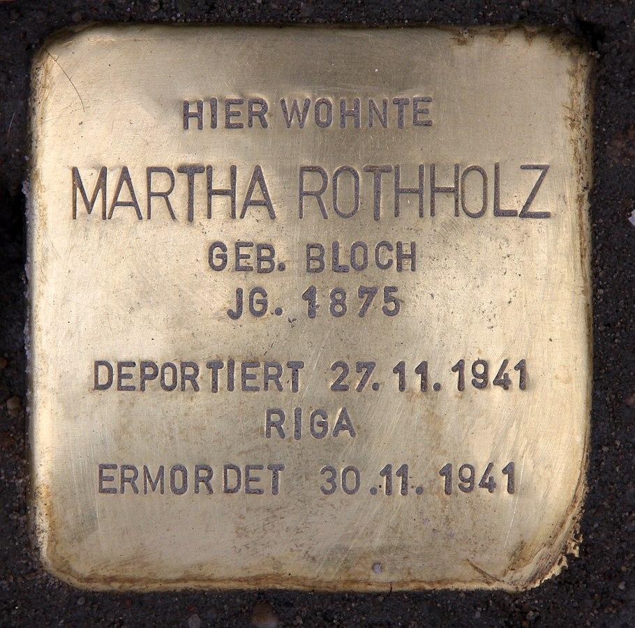 Das nicht unbeträchtliche Vermögen der Witwe Martha Rothholz wurde beschlagnahmt und das Haus Friedbergstraße 7 enteignet. Von September 1941 an musste sie, wie so viele andere, den Judenstern tragen. Am 27. November 1941 deportierten die Nationalsozialisten Martha Rothholz zusammen mit etwa 730 weiteren Berliner Juden nach Riga. Am Morgen des 30. November 1941 wurde sie dort erschossen.