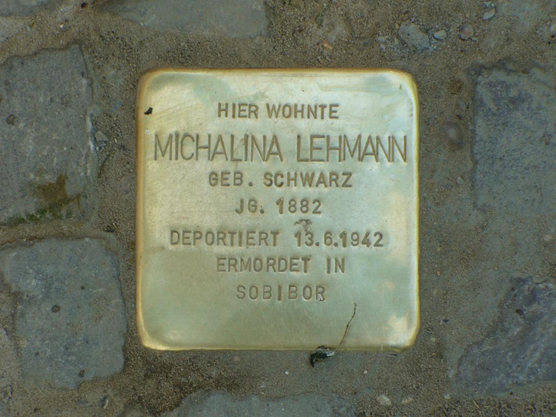 Michalina Lehmann geb. Schwarz wurde am 23. Mai 1882 in Tarnow/Galizien, heute Polen, geboren. Sie wohnte in der Giesebrechtstraße 2. Im Adressbuch stand von 1933 an unter dieser Adresse an der Eintrag:
