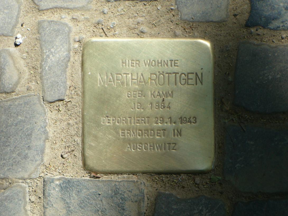 Martha Röttgen, geb. Kamm, wurde am 12. Mai 1884 in Beuthen, (Oberschlesien) geboren. Über ihr Leben, ihren Beruf und ihre Familie ist nichts bekannt. Den Einträgen in den Adressbüchern ist zu entnehmen, dass sie als Berufsbezeichnung Direktrice angab. Am 29. Januar 1943 wurde sie zusammen mit 1000 anderen Menschen bei bitterer Kälte in einen Zug gepfercht und nach