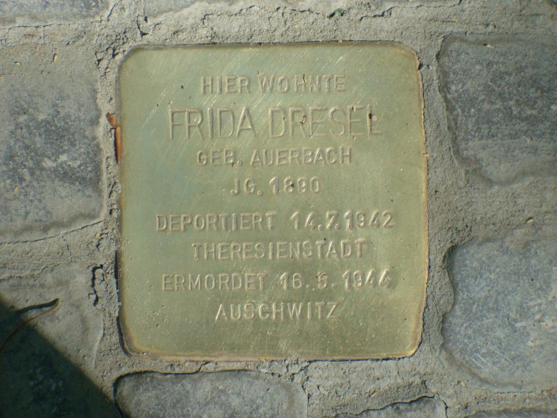 Als dies geschah, war Frieda Dresel nicht mehr in Berlin. Am 14. Juli 1942 war sie mit 99 weiteren Opfern nach Theresienstadt deportiert worden. Angeblich war dieses „Altersghetto“ eine Stätte für einen ruhigen Lebensabend, tatsächlich handelte es sich aber um ein Durchgangslager, in dem die Menschen auf den Tod warteten, herbeigeführt entweder durch die dortigen unmenschlichen Lebensbedingungen oder durch die Ermordung in einem weiteren Vernichtungslager . Letzteres war Frieda Dresels Schicksal. Nachdem sie fast zwei Jahre Hunger, Kälte, Krankheiten und die hoffnungslose Überfüllung der Räume überlebt hatte, wurde sie am 16. Mai 1944, diesmal zusammen mit 2500 Personen, von Theresienstadt nach Auschwitz verschleppt. Sie gehörten zu den rund 7500 Menschen, die im Mai 1944 in drei „Transporten“ aus Theresienstadt weggebracht wurden, weil am 23. Juni eine internationale Kommission angekündigt war und die Wohnungen nicht so beengt aussehen sollten. Lediglich 34 der am 16. Mai Deportierten überlebten, Frieda Dresel gehörte nicht dazu. Ihr Todesdatum ist nicht bekannt.