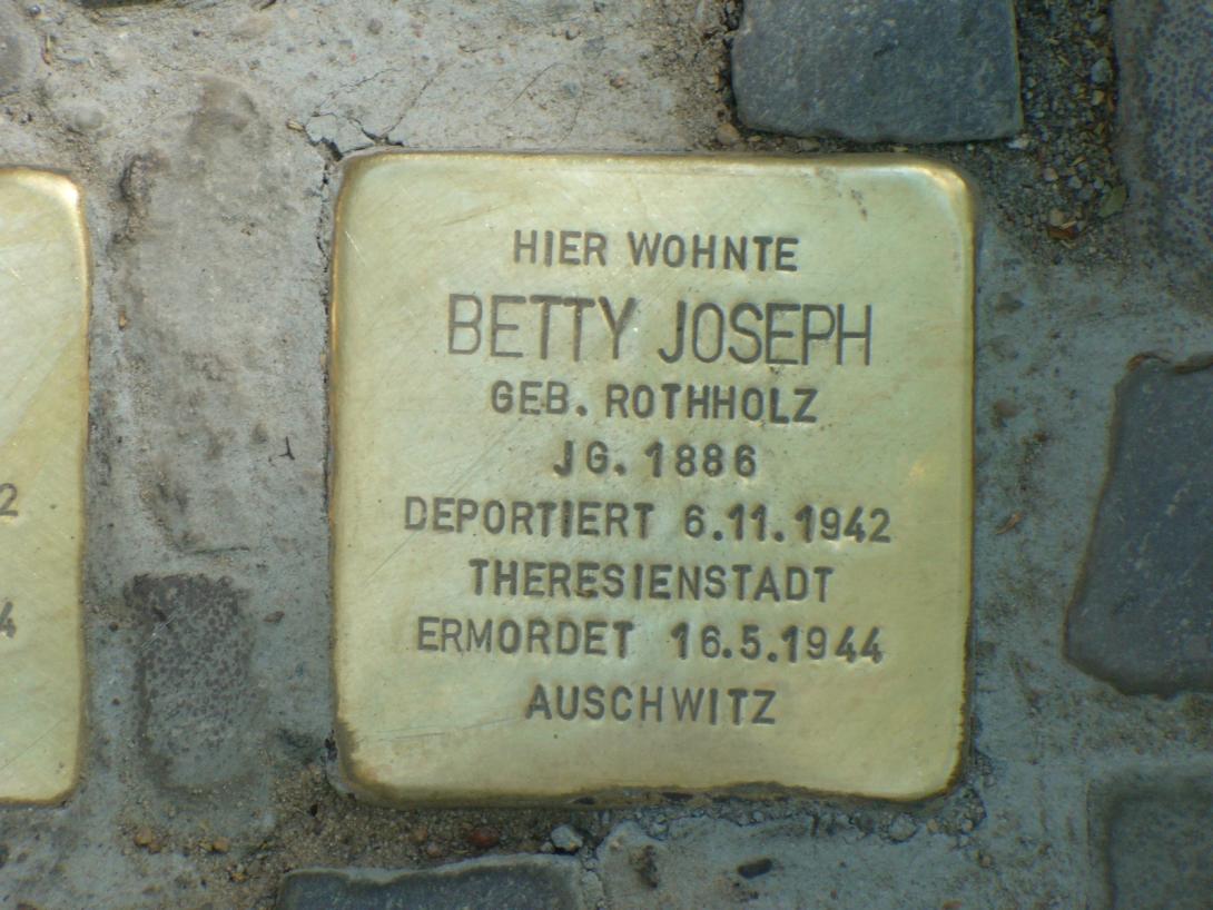 Die „Vorauszahlungen“ wurden mit 150 RM monatlich auf ein Lebensalter von 85 Jahren berechnet. Dieses Alter zu erreichen, hatten weder die erst 56 Jahre alte Betty noch ihr 71-jährige Mann den Hauch von einer Chance. Sie hielten trotz Überfüllung, Hunger, Kälte und katastrophaler Hygieneverhältnisse anderthalb Jahre durch, dann, am 16. Mai 1944, wurden sie zusammen mi 2500 weiteren Personen von Theresienstadt nach Auschwitz verschleppt. Sie gehörten zu den rund 7500 Menschen, die im Mai 1944 in drei „Transporten“ aus Theresienstadt weggebracht wurden, weil am 23. Juni eine internationale Kommission angekündigt war und die Wohnungen nicht so beengt aussehen sollten. Lediglich 34 der am 16. Mai Deportierten überlebten, Betty und Carl Joseph gehörten nicht dazu. Ihr Todesdatum ist nicht bekannt.