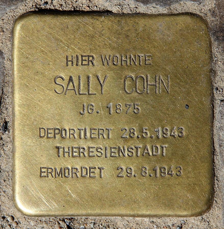 Sally Cohn wurde am 28. November 1875 in Berlin als Sohn von Moritz und Frieda Cohn geboren. Am 28. August 1907 heiratete er in Berlin Rosa Kleinmann, das Ehepaar hatte ein Kind. Im Berliner Adressbuch war er bis 1938 als Kaufmann oder als „Vertreter“ mit der Adresse Grolmannstraße 34/35 eingetragen.