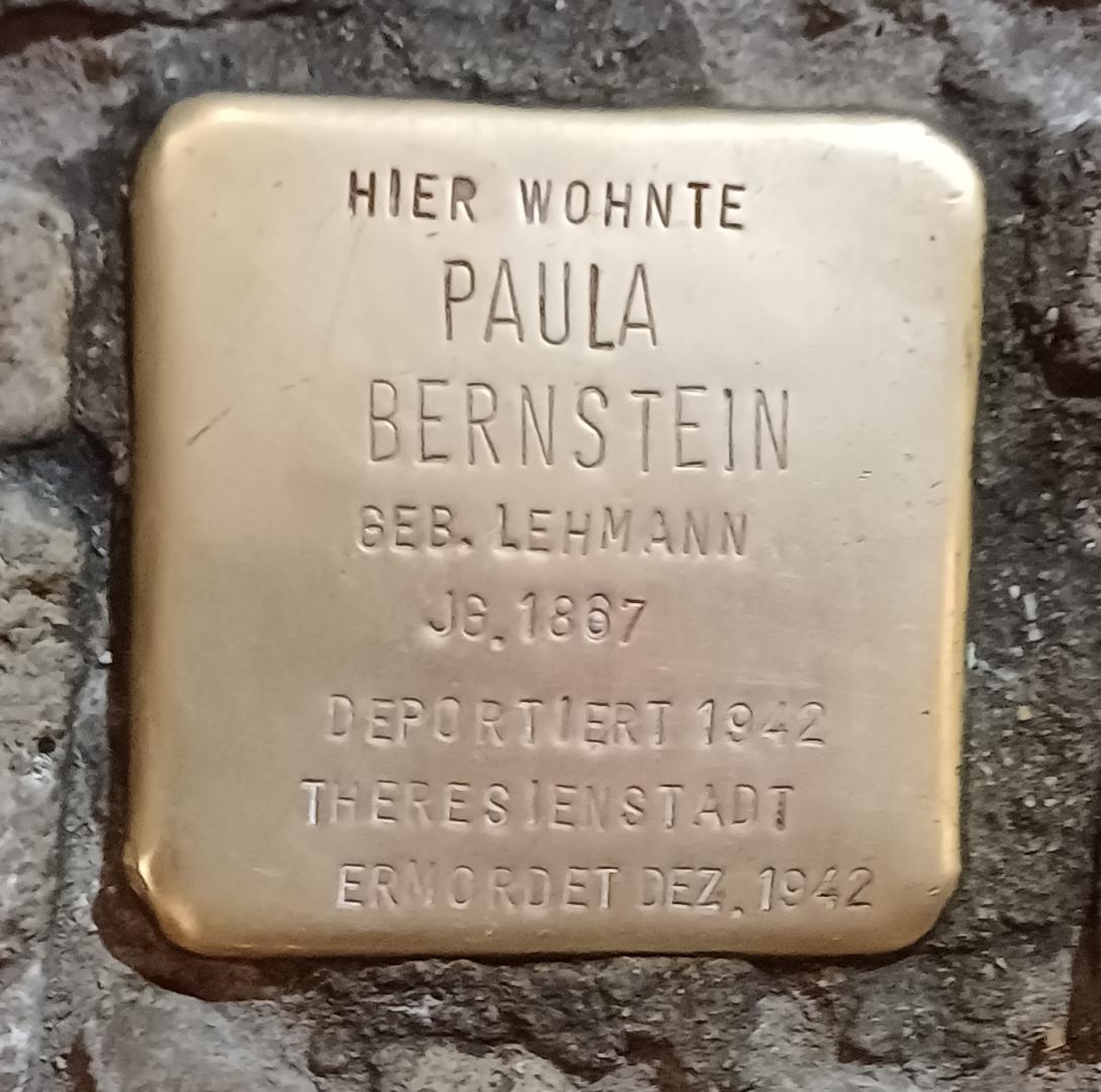 , wo der 75-jährigen ein sonniges Alter versprochen wurde. Von den 100 Insassen überlebten nur fünf. Paula Bernstein kam wenige Wochen nach ihrer Ankunft an den grauenhaften Lebensumständen in dem von den Nationalsozialisten betriebenen „Altersghetto“ ums Leben. Ihr Todesdatum war nach Angaben der Tochter Käthe der der 14. Dezember 1942, nach Angabe des Bundesarchivs der 19. Dezember 1942.