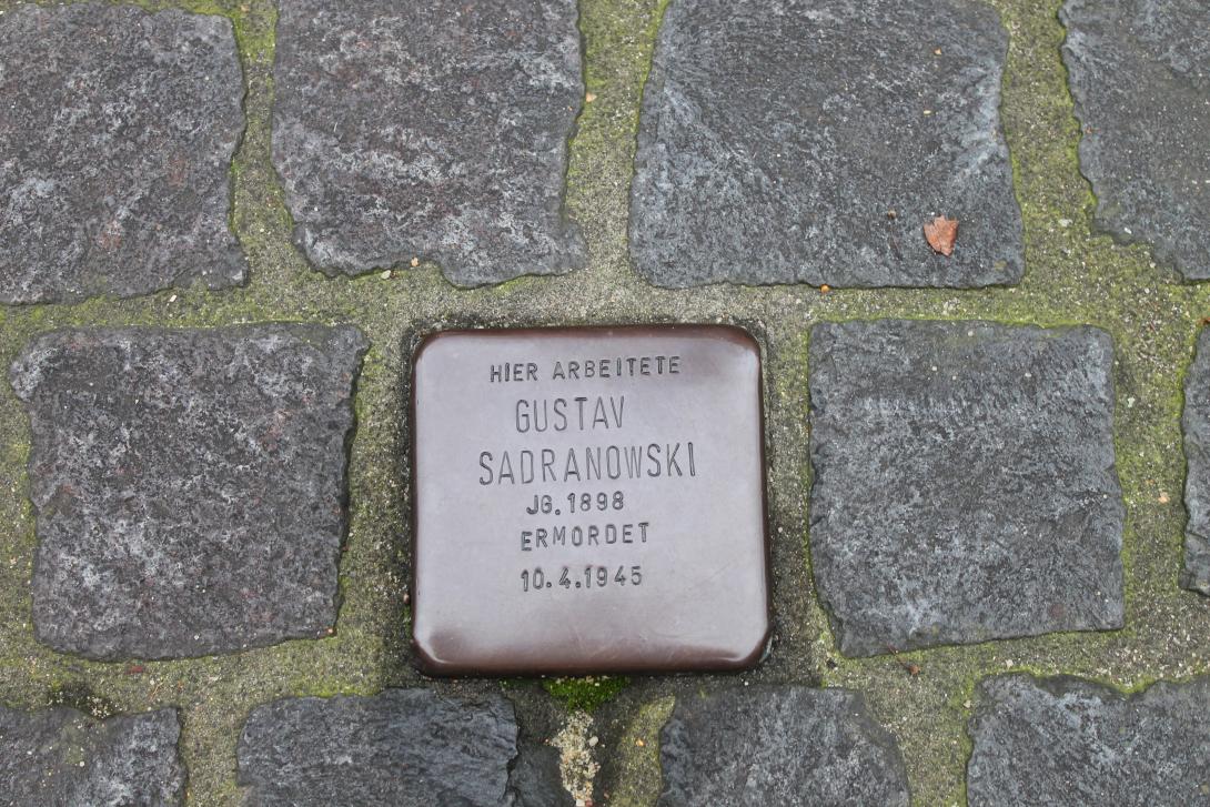 Gustav Sadranowski macht eine Ausbildung zum Dreher. Im Jahr 1925 heiratet er Luise Hagelmann. Vor 1933 ist Sadranowski Mitglied der SPD. Während des nationalsozialistischen Regimes arbeitet er in der AEG-Turbinenfabrik in der Berliner Huttenstraße und schließt sich dort der betrieblichen Widerstandsgruppe um Wilhelm Leist an, die Familien von politisch Verfolgten mit Geld und Essensmarken unterstützt, Flugblätter weitergibt und Auslandsnachrichten verbreitet. Als die Gruppe wegen eines Spitzels zu Beginn des Jahres 1945 auffliegt, gerät auch Gustav Sadranowski in die Hände der
