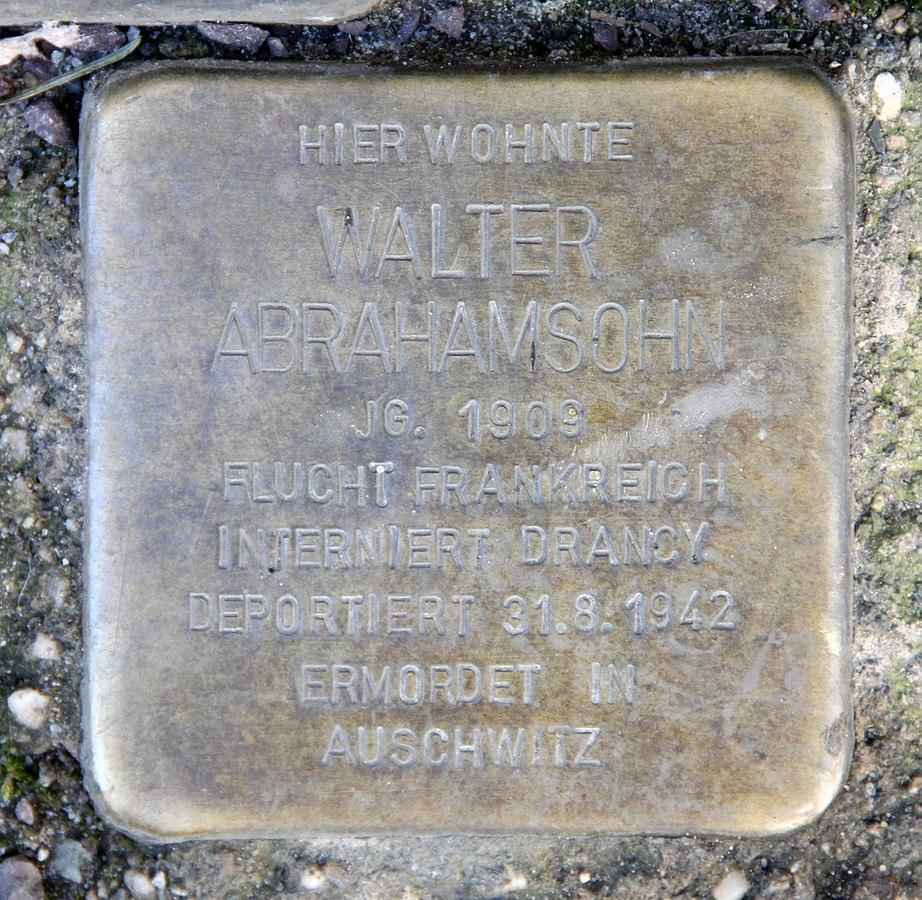 Danach brach die Korrespondenz entweder ab, oder es haben sich keine weiteren Briefe erhalten. Walter war zu diesem Zeitpunkt Teil der Arbeitskompagnie „252e Compagnie de Travailleurs“ (CTE), die zu Erdschanzarbeiten an der Verdun-Linie in Vorbereitung auf die deutschen Offensive zwangsverpflichtet war. Im Mai 1940 erfolgte der Angriff auf Frankreich, danach verlieren sich die Spuren Walter Abrahamsohns. Es ist anzunehmen, dass er weiterhin in Lagern im besetzten Frankreich interniert blieb, denn im August 1942 befand er sich im Sammel- und Durchgangslager Drancy rund 20 Kilometer nordöstlich von Paris. Er scheint zuvor im Internierungslager Bram im Süden Frankreichs interniert gewesen zu sein, wie es eine französische Transportliste nahelegt. Von Drancy aus wurde der 31-Jährige am 31. August 1942 mit dem „Convoy 26“ in das Vernichtungslager Auschwitz deportiert. Walter Abrahamsohn wurde entweder unmittelbar nach der Ankunft in Auschwitz ermordet, oder er wurde zunächst als einer der zwölf männlichen Häftlinge des 1000 Personen umfassenden Transports ins Lager selektiert und zu einem späteren Zeitpunkt getötet. In jedem Fall gehörte er nicht zu den wenigen Überlebenden von Auschwitz.