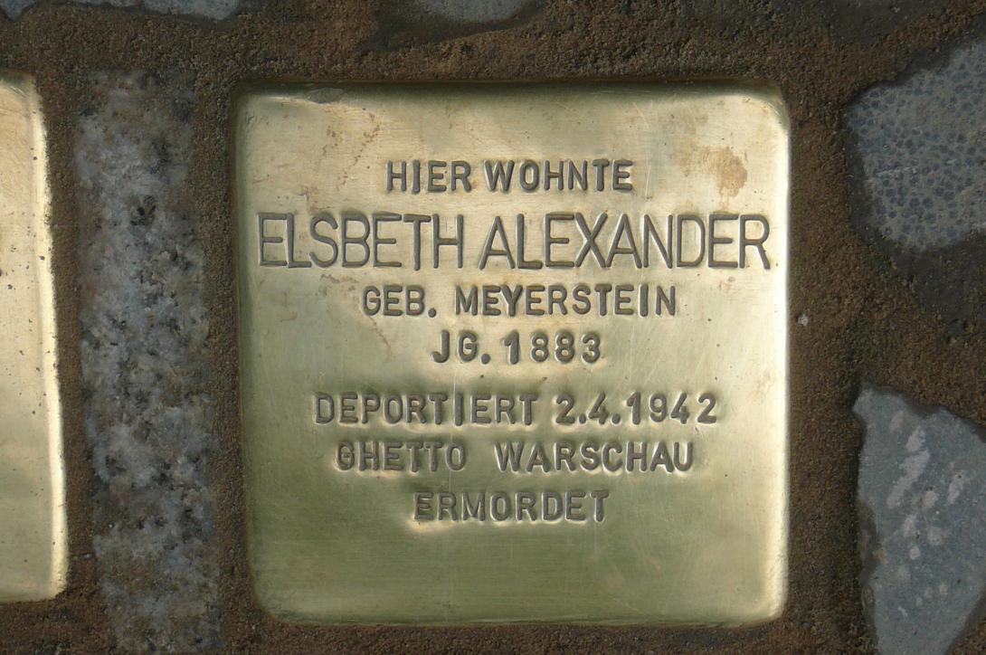 Hans und Elsbeth Alexander sind am 2. April 1942 am Bahnhof Grunewald und am Gleis 17 in einen Zug getrieben worden, der ursprünglich nach Trawniki abgehen sollte, dann aber in das schon überfüllte Warschauer Ghetto umgeleitet wurde. Die 1025 Ankömmlinge wurden zunächst in einer Quarantänestation untergebracht und dann ins Ghetto eingeliefert. Dort sind sie ums Leben gekommen.