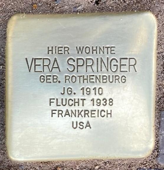 Vera Dorothea Rothenburg wurde am 21. Juli 1910 in Berlin geboren. Über ihre Kindheit und Jugend ist nichts bekannt. Am 15. November 1937 heiratete sie Oswald Springer.