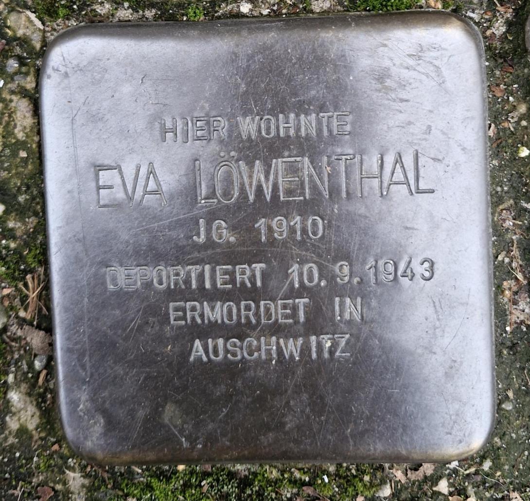 Evas Vater Gustav Löwenthal wurde am 26. Januar 1943 nach Theresienstadt deportiert, wo er am 20. März 1943 ermordet wurde.