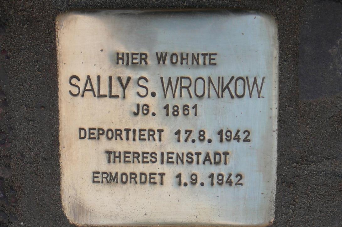 Sally Siegmund Wronkow wurde am 27. Dezember 1861 in Frankfurt/Oder geboren. Er war verheiratet mit Therese Wronkow geb. Engel, die aus Ostpreußen stammte. Er stand nie im Berliner Adressbuch oder Telefonbuch, auch nicht im Jüdischen Adressbuch 1931. Deshalb ist schwer zu ermitteln, wann die beiden nach Berlin gekommen sind. Bei der Volkszählung am 17. Mai 1939 waren Sally und Therese Wronkow als Untermieter “bei Salomon“ in der Kufsteiner Straße 8 gemeldet.