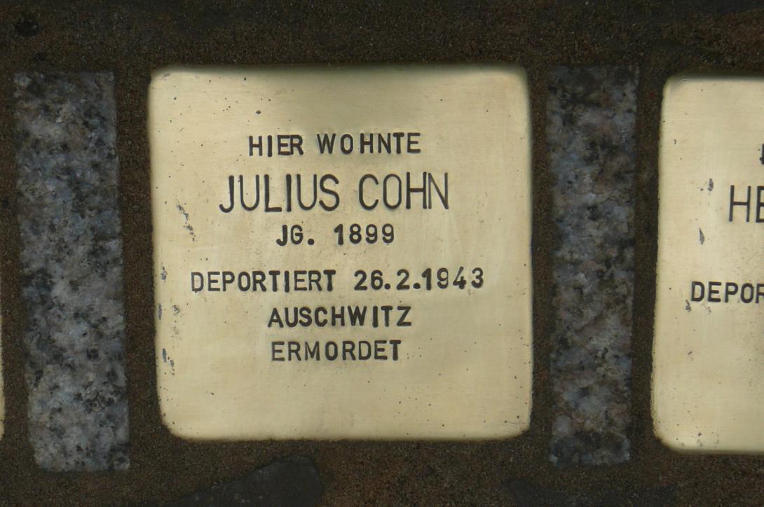 Julius und Judith bekamen aus der Familie Cohn als Erste den Deportationsbefehl. Mit dem 30. Osttransport wurden sie mit weiteren 1.098 Personen am 26. Februar 1943 in das Vernichtungslager Auschwitz deportiert und ermordet. Julius Cohn starb mit 43 Jahren und Judith Cohn mit 33 Jahren.