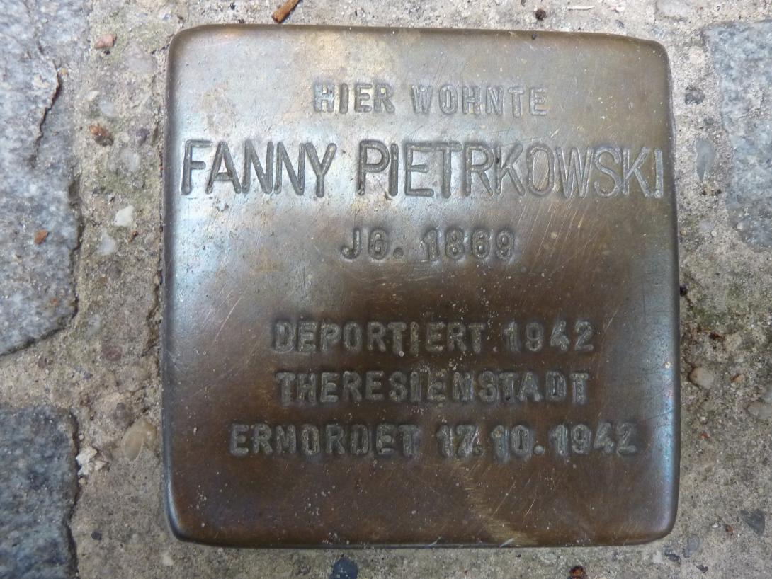 Am 21. September 1942 wurde Fanny Pietrkowski mit einem der „kleinen Alterstransporte“ vom Anhalter Bahnhof nach Theresienstadt deportiert. An den fahrplanmäßigen Personenzug Richtung Dresden bzw. Prag waren für 100 Personen zwei weitere Waggons gehängt worden. Von den 100 Deportierten des Transports überlebten zehn Menschen das Ghettolager.