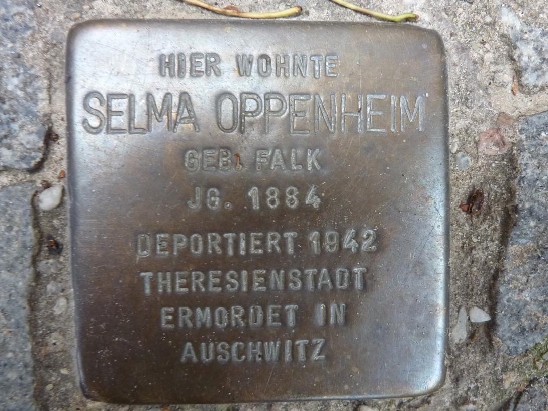 Selma Oppenheim wurde am 16. Mai 1944 von Theresienstadt in das Vernichtungslager Auschwitz verschleppt und dort ermordet.