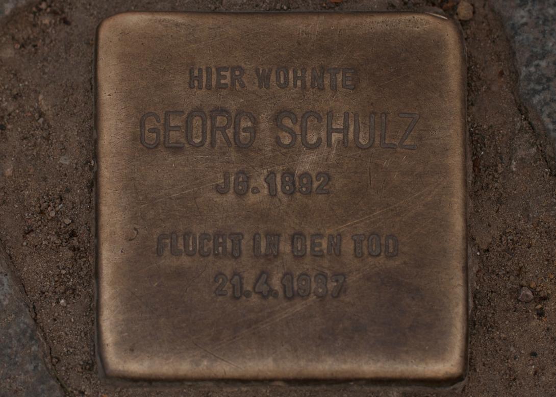 Georg Schulz, geboren am 5. August 1882 in Speichrow im Kreis Lübben, war Ministerialrat im Reichswehr-, später Reichskriegsministerium. Er wählte am 21. April 1937 den Freitod. Wie aus seiner Familie berichtet wird, musste er fürchten, wegen seiner Homosexualität von der Gestapo verhaftet zu werden.