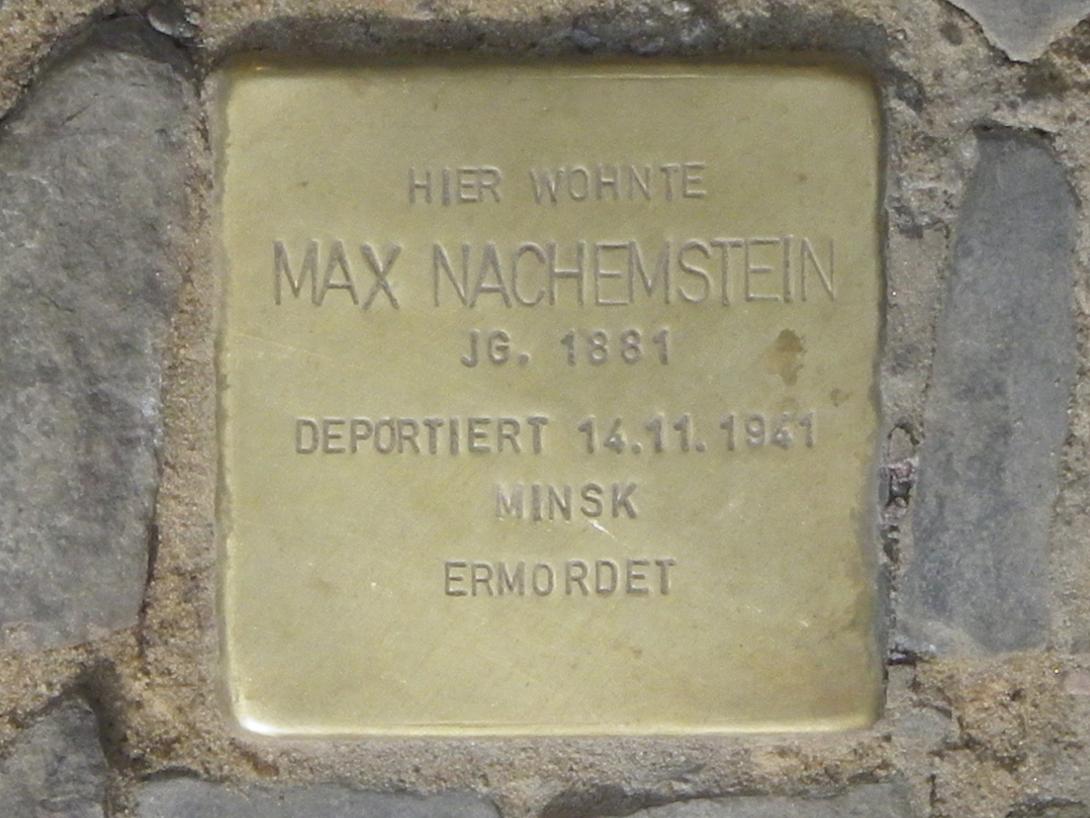 Die Familie Nachemstein wohnte zuletzt in einer zweistöckigen Drei-Zimmer-Wohnung in der Leonhardtstraße 6 in Berlin-Charlottenburg. Am 14. November 1941 wurde das Ehepaar nach Minsk deportiert, wo Max Nachemstein wie auch seine Frau Clara bereits einen Monat nach der Ankunft ums Leben kamen. Ob Mord, Hunger, Kälte oder Krankheit die Todesursache waren, bleibt ungewiss.