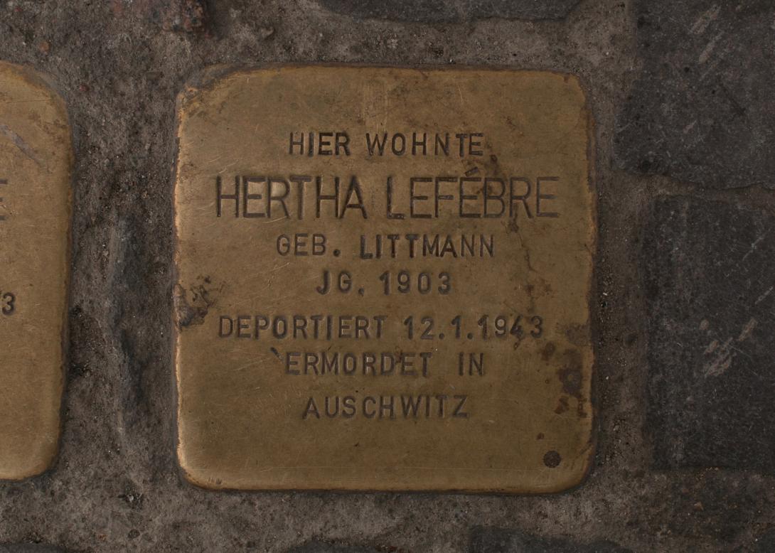 1937 zog der Kaufmann Otto Lefèbre in die Marburger Straße 3 ein. Er besaß eine Fensterreinigungsfirma, die unter dieser Adresse bis 1941 zu finden war. Im darauf folgenden Jahr tauchte sein Name weder hier noch unter einer anderen Berliner Adresse auf. Aus Archivunterlagen geht hervor, dass der am 6. September 1881 im pommerschen Falkenburg/Złocieniec geborene Otto Lefèbre und seine am 22. Oktober 1903 in Berlin geborene Ehefrau Hertha Lefèbre, geb. Littmann, sowie deren am 11. März 1935 geborener Sohn Lutz Lefèbre in das