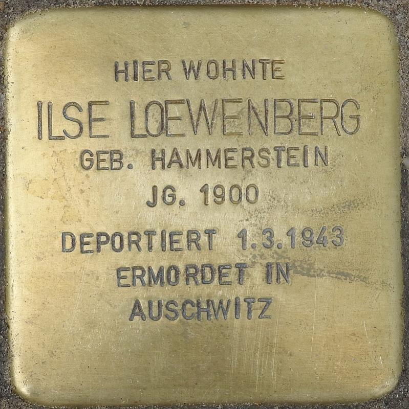 Ilse Loewenberg, geb. Hammerstein, kam am 5.2.1900 in Berlin zur Welt. Sie war die Ehefrau von Egon Loewenberg. Weitere Informationen finden sich in seiner Biographie.