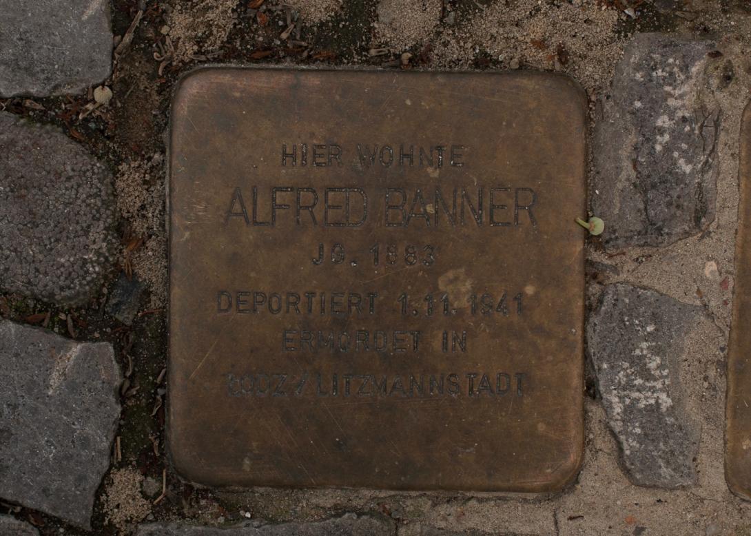 Das Ghetto Lodz war 1940 durch die deutschen Besatzer von der polnischen Industriestadt abgetrennt und mit Stacheldraht umzäunt worden. Etwa 160 000 Lodzer Juden wurden in die bereits heruntergekommenen und – v.a. im Sanitärbereich – äußerst ärmlich ausgestatteten Häuser gepfercht. Im Herbst 1941 deportierte man weitere 20 000 Juden aus dem „Altreich“ in das völlig überfüllte Ghetto. Die Lebensbedingungen im Ghetto waren katastrophal. Keine Heizung, keine Toiletten, keine Betten, weitgehend mussten die Menschen auf Strohsäcken oder dem nackten Boden in Massenunterkünften schlafen, die Ernährung war völlig unzureichend. Hunger, Kälte, Erschöpfung und Krankheiten rafften viele Leute dahin. Für arbeitsfähig Gehaltene mussten Zwangsarbeit v.a. in Munitionsfabriken und Uniformschneidereien leisten. Die drei Banners wurden in ein Zimmer in der Blechgasse 12/5 „eingesiedelt“, wie die verschleiernde offizielle Bezeichnung hieß. Wie Hermann wurde auch die bereits an Schwäche leidende Lina als arbeitsfähig eingestuft, vermutlich auch Alfred, obwohl auf der Gestapoliste nur der jüngere Alfred zu finden ist – auf der Liste der „Eingesiedelten“ wiederum nur der Ältere.