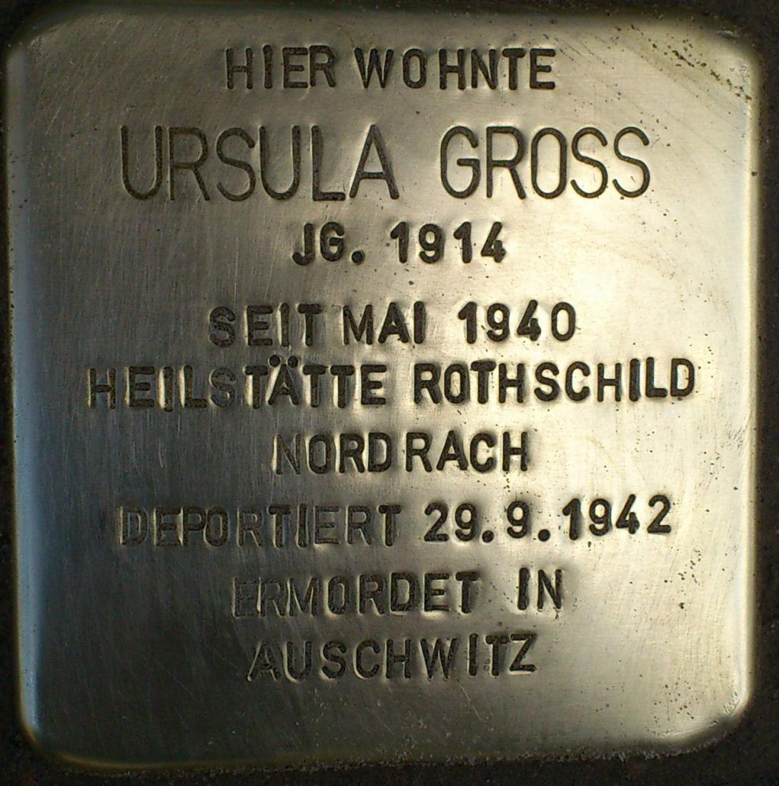 Das Ziel des Deportationszuges, in dem sich Ursula Gross am 30. September 1942 befand, ist heute nicht mehr zweifelsfrei zu klären. Der Weg führte von Karlsruhe über Darmstadt in das Vernichtungslager Treblinka oder nach Auschwitz . Vermutlich wurde sie unmittelbar nach der Ankunft ermordet.