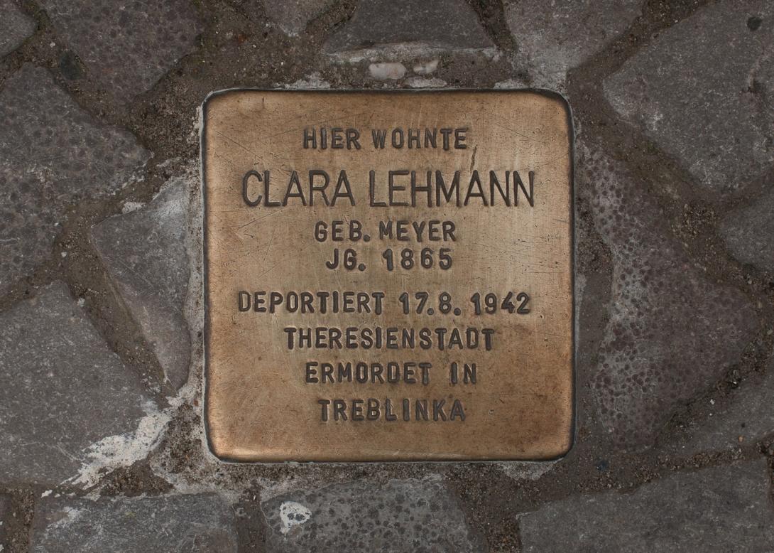 Clara Lehmann wurde als Clara Meyer am 24.5.1865 in Oerlinghausen (Lippe) geboren. 1939, als sie in der Mommsenstraße 6 polizeilich gemeldet war, war sie geschieden. Sie wurde am 17. August 1942 nach Theresienstadt deportiert, von da am 21. September 1942 nach Treblinka und dort nach ihrer Ankunft ermordet.