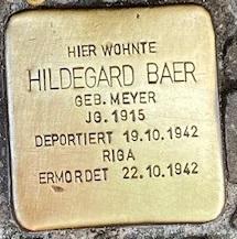 Hildegard geb. Meyer wurde am 20. März 1915 in Berlin geboren und war das einzige Kind von Willy Meyer und Helene geb. Oppenheim. Der Vater besaß die Firmen „W.Meyer & Comp.“ (Parfümerie en gros) und Hermann Meyerson (Papier en gros). Er handelte mit vielfältigen Produkten. Seine Ehefrau Helene war als Prokuristen voll eingebunden in die Geschäfte. Sie wohnen in der Freisinger Straße 13. Bestimmt wurde ihr einziges Töchterchen wie ein Augapfel von ihren Eltern behütet. Aber wie sehr wird sich das Leben der Familie ab 1933 verändert, verschlechtert haben.
