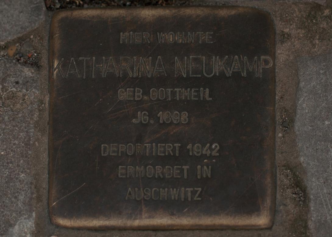 Anfang Dezember 1942 wurden Katharina Neukamp und ihr 16-jähriger Sohn Richard Ulrich abgeholt und in das Sammellager Große Hamburger Straße 46 eingeliefert, wo sich zur Deportation bestimmte Jüdinnen und Juden registrieren lassen mussten. Von hier wurden sie am 9. Dezember 1942 nach Auschwitz deportiert und dort ermordet.