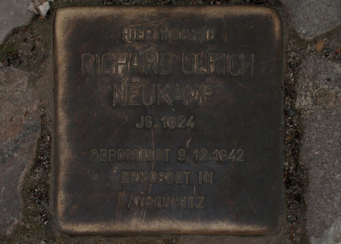 Richard Ulrich Neukamp wurde am 27. August 1924 in Leipzig geboren. Er hatte einen Bruder Klaus, der nach Australien flüchten konnte. Richard Ulrich musste in Berlin zurückbleiben. Als er zusammen mit seiner Mutter Katharina Neukamp von zu Hause abgeholt wurde, war er 16 Jahre alt und Schüler, allerdings vom Besuch öffentlicher Schulen wie alle Juden ausgeschlossen. Über das Sammellager der Großen Hamburger Straße 26, einem ehemaligen jüdischen Altersheim, wurden die beiden am 9. Dezember 1942 nach Auschwitz deportiert und dort ermordet.