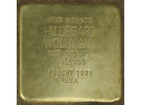 Hildegard Wollmann, geb. Graupe, war die Mutter von Gerd Wollmann (*9. November 1929, Berlin). Sie war verheiratet mit Bruno Wollmann. Die Familie wohnte in der Niebuhrstraße 71. Den Wollmanns gelang es unmittelbar vor den Novemberpogromen 1938, Deutschland via Frankreich zu verlassen, um mit Hilfe eines Cousins von Hildegard in die USA auszuwandern. Nähere Details zu Hildegards Familienhintergrund, ihrer Ausbildung oder ihrem Beruf sind nicht überliefert. Zum Anlass der Verlegung seines Stolpersteins im Jahr 2022 erzählte ihr 93-jähriger Sohn Gerd die Geschichte der Flucht seiner Familie aus Berlin: