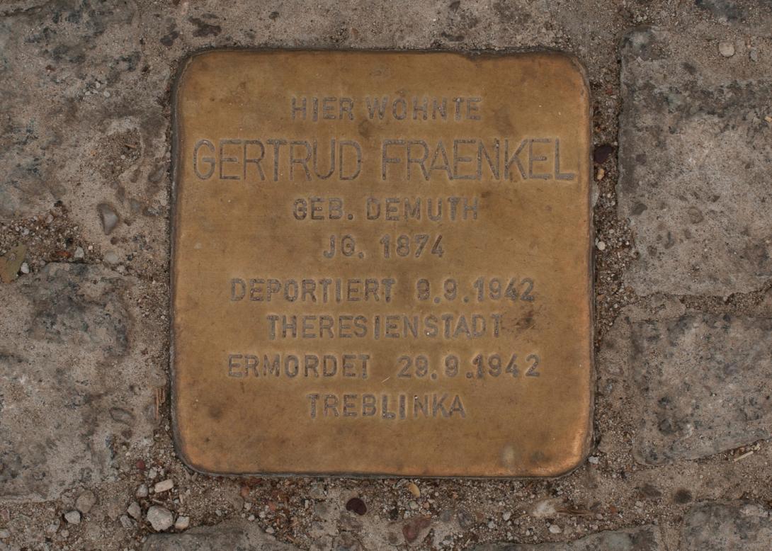Gertrud Fraenkel wurde am 9. September 1942 in das KZ Theresienstadt deportiert. Ihr Todesdatum ist unbekannt.