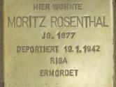 Moritz Rosenthal wurde am 19. Januar 1877 in Posen (Poznan) geboren, seine Frau Selma Rosenthal, geb. Jarecki, am 26. Juli 1883 ebenfalls in Posen. Seit 1930 war Moritz Rosenthal in der Invalidenstraße 141 gemeldet, nebenan in der 140 hatte er eine Schuhwarenhandlung. Bis 31.3.1939 wohnte er dort, vermutlich war sein Geschäft geschlossen worden. Danach zogen sie als Untermieter zur Familie Reifen in die Nürnberger Straße 16, wurden aber nach knapp drei Jahren wieder hinausgetrieben.