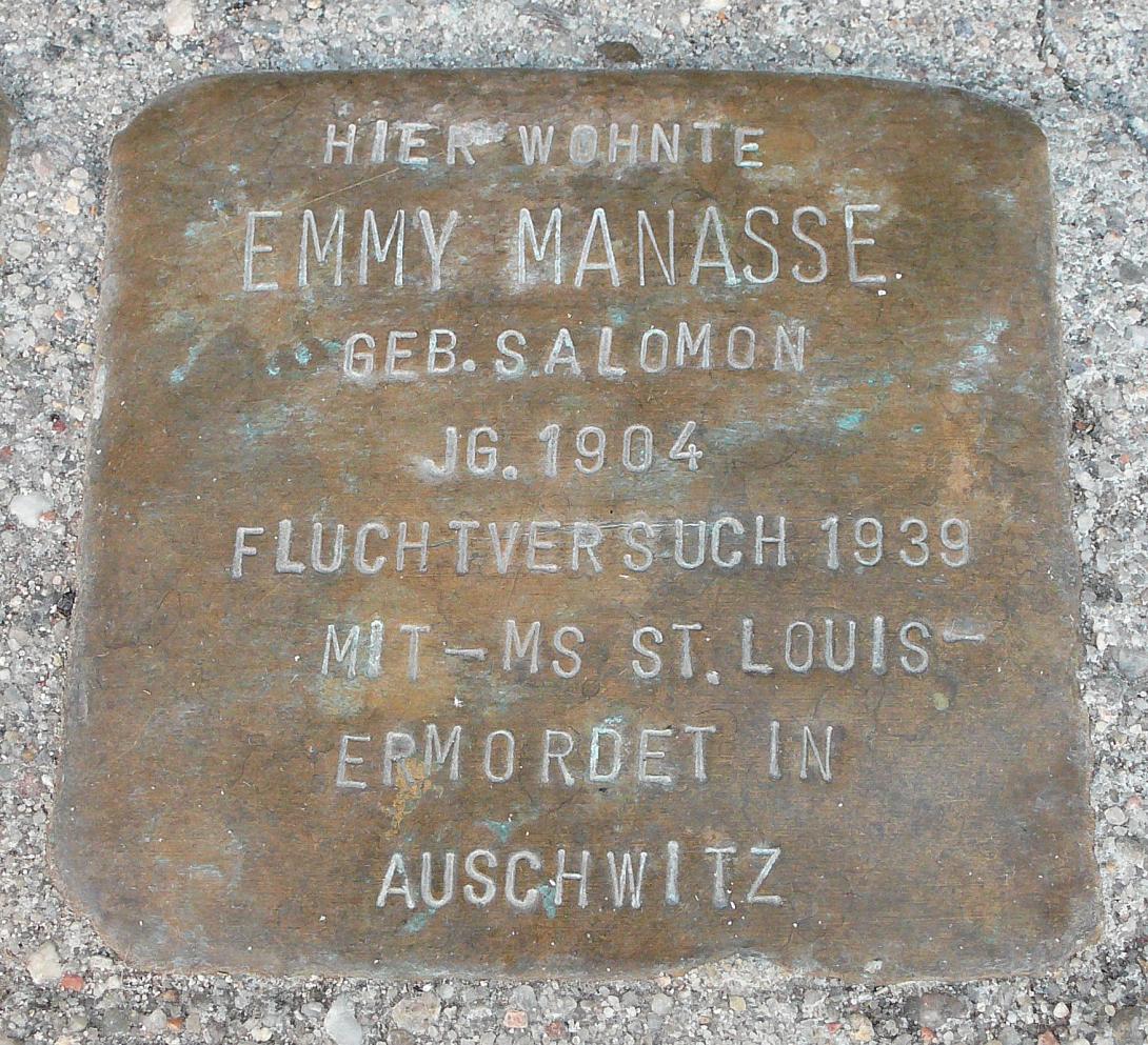 Ida Manasse geb. Cossmann, am 10. Dezember 1870 in Soldin, Herbert Manasse, geboren am 16. Oktober 1899 in Berlin, Emmy Manasse geb. Salomon, am 25. Mai 1904 in Berlin und Wolfgang Manasse, geboren am 14. März 1929 in Berlin, versuchten im Mai 1939 mit MS „St. Louis“ aus Deutschland zu fliehen, wurden aber weder in Kuba noch in den USA an Land gelassen. Das Schiff kehrte nach Europa zurück. Familie Manasse fand Aufnahme in Frankreich, wurde dort von der