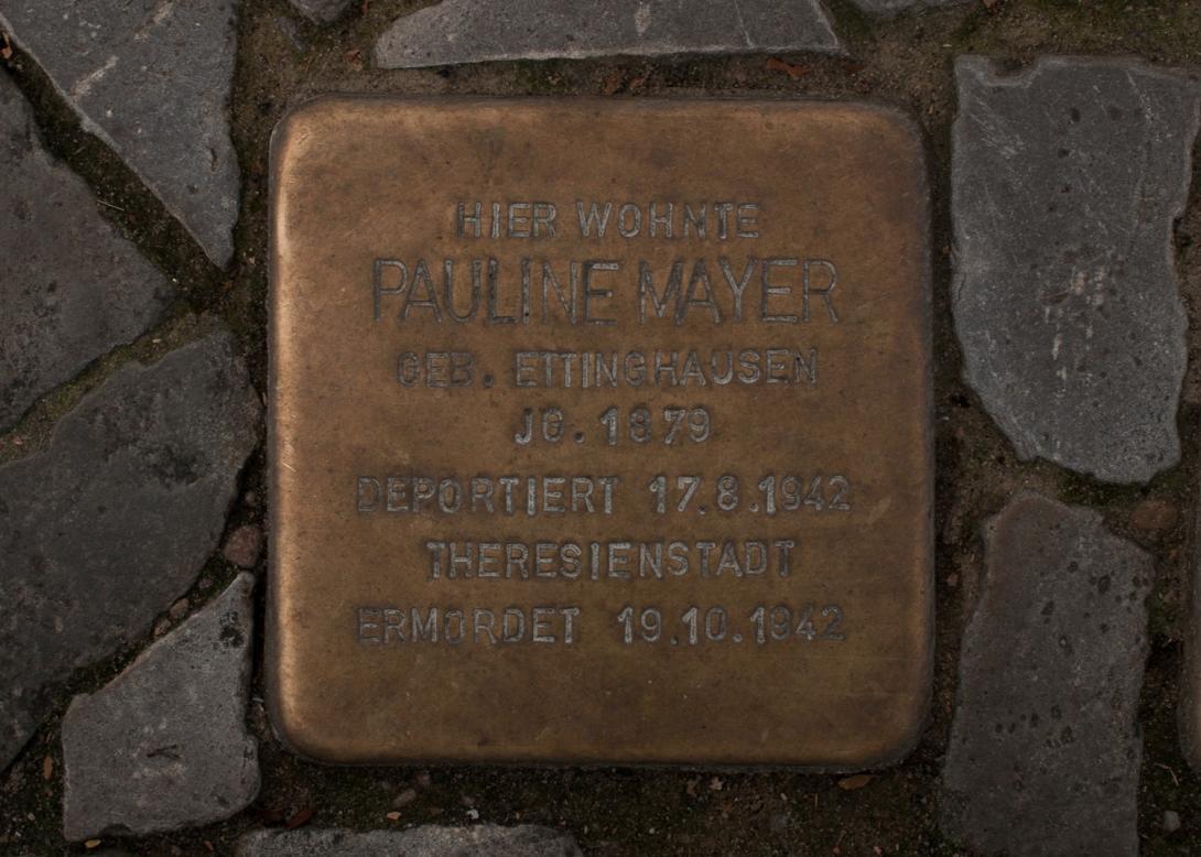 Julius Mayer war Besitzer der Julmay Bank in Berlin. Als die Nazis den Juden eigene Geschäfte verboten, wurde er enteignet und die Bank von einem Deutschen übernommen. Am 17. August 1942 wurden Julius und Pauline Mayer im Alter von 79 und 66 Jahren mit dem ersten großen Theresienstadt-Transport in das Ghetto nördlich von Prag deportiert. In dem Personenzug, der vom Güterbahnhof Moabit startete, saßen 997 Menschen. Von ihnen überlebten nur 16. Das Todesdatum von Pauline Mayer war der 19. Oktober 1942, Julius Mayer ist am 9. November 1942 ums Leben gebracht worden.
