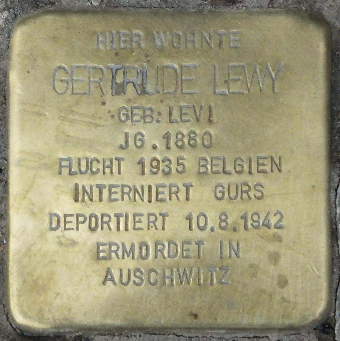 Hugo und Gertrude Lewy gelang es 1935, nach Belgien zu flüchten und in Brüssel Unterschlupf zu finden.. Doch nach der deutschen Besetzung des Landes wurden beide aufgegriffen und deportiert. In dem Internierungslager Gurs in den Pyrenäen in Südfrankreich ist sie zu einem unbekannten Zeitpunkt ums Leben gekommen. Ihr Mann Hugo wurde über das bei Paris gelegene Sammel- und Durchgangslager Drancy und am 10. August 1942 in einem Zug mit 1006 Menschen nach Auschwitz verschleppt und dort ermordet.