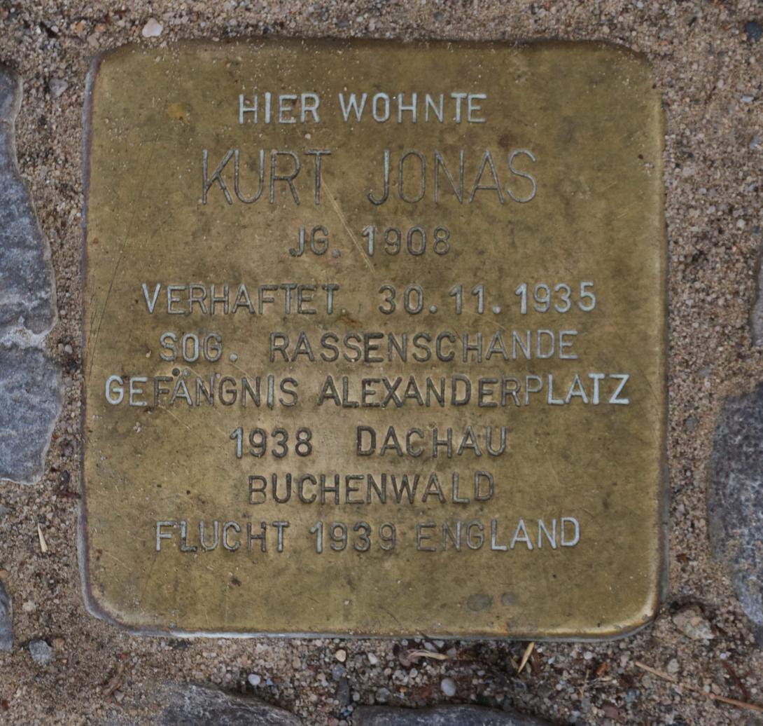 Aber Kurt und Hildegard trennten sich nicht. Am 30. November 1935 wurde er von der Gestapo verhaftet und am 18. Dezember 1935 wegen Verstoß gegen die oben genannten Gesetze angeklagt. Die 12. große Strafkammer des Landgerichts Berlin verurteilte Kurt Jonas am 8. Februar 1936 zu einem Jahr Gefängnis. Die Untersuchungshaft wurde angerechnet. Er verbüßte die Strafe vom 10.2.1936 – 30.11.1936 in der Gefangenenanstalt Neukölln und wurde zunächst entlassen.