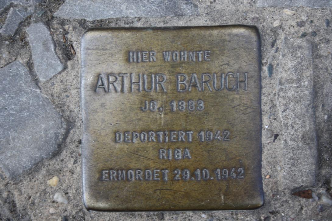Arthur Baruch, geboren am 14. Mai 1883, kam 1938 mit seiner Frau Charlotte Baruch geb. Rosenthal, geboren am 8. Februar 1894, aus der gemeinsamen Geburtsstadt Köslin in Pommern (heute: Koszalin/Polen) nach Berlin. Mit ihnen kam die am 11. Januar 1923 geborene Tochter Eva, die eine Ausbildung zur Säuglingsschwester im Jüdischen Krankenhaus machte, wo sie auch wohnte. Der Sohn Lothar hatte Köslin schon im Winter 1936/37 verlassen, als die Drangsalierung in der Mittelschule zu schlimm wurde. Er lebte im Jüdischen Waisenhaus in Pankow.