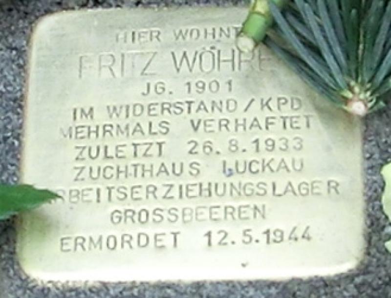 Die Strafe verbüßte Fritz Wöhrer – wie im 1. Weltkrieg Karl Liebknecht und in der Nazizeit Robert Uhrig, Günther Weisenborn, Wolfgang Abendroth und viele andere politische Häftlinge – im Zuchthaus Luckau. Von dort aus wurde er 1943 in das Arbeitserziehungslager Großbeeren in Branden-burg gebracht, wo er am 12. Mai 1944 an Hungertyphus verstarb.