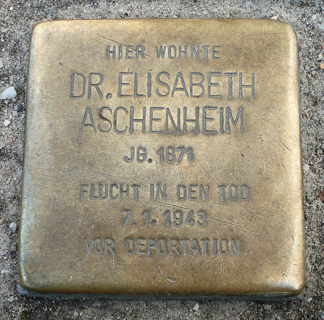 Ihre Schwester Margarete, verheiratete Krauss, war am 7. September 1942 von Kassel nach Theresienstadt deportiert worden. Ihre Berufsarbeit, ihre Mitarbeit in den Vereinen, ihr Vermögen waren verloren, Schmuck und Silber abgegeben. – Elisabeth Aschenheim hatte sich nach Auskunft von Nachfahren auf den „Freitod“ vorbereitet. Laut Testament sollte Agnes Schaale, Haushälterin und sicherlich auch Vertraute seit über 30 Jahren, eine Leibrente erhalten. Am 7. Januar 1943 vergiftete sich die Ärztin Dr. Elisabeth Aschenheim. Sie wurde am 15. Januar 1943 in Stahnsdorf begraben.