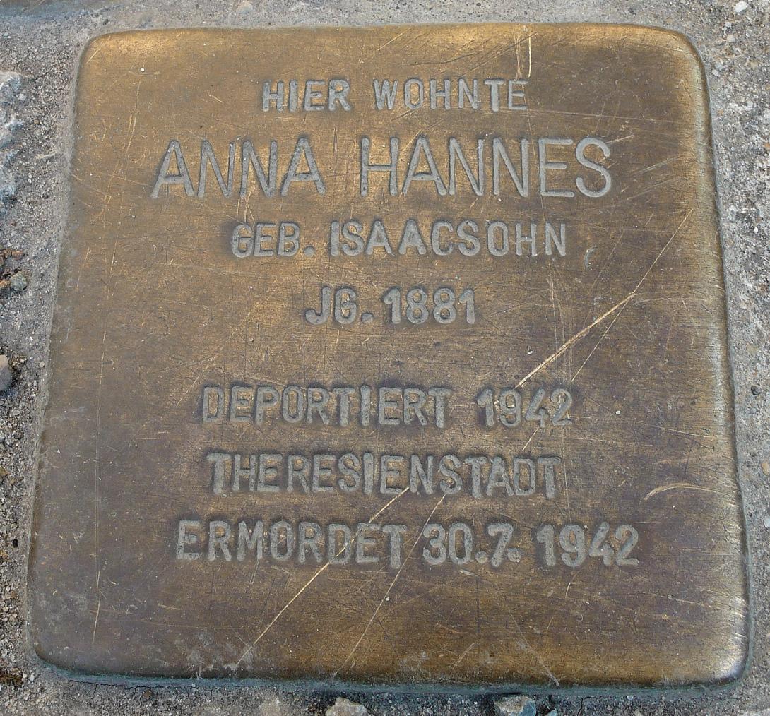 Anna Hannes, geb. Isaacsohn, geb. am 09. Januar 1881 in Berlin war die Ehefrau von Paul Hannes.